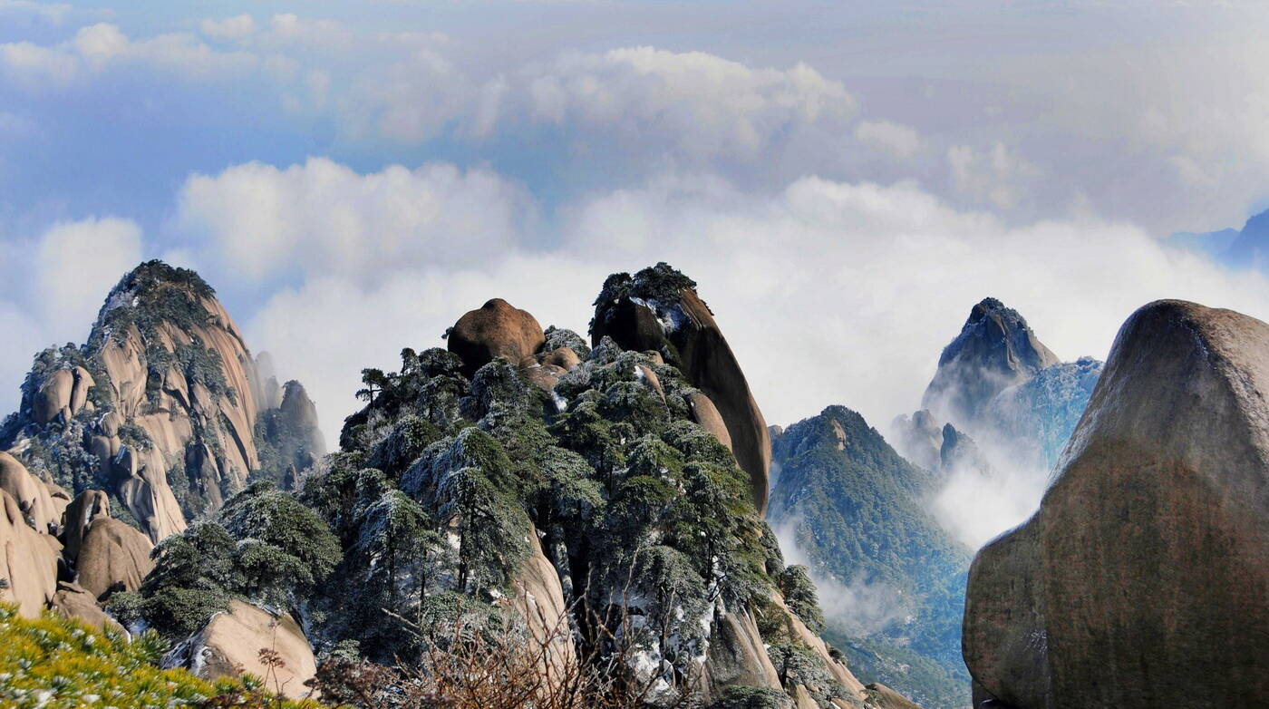 安徽天柱山:霧鎖群峰疑畫境 日照層林若錦屏